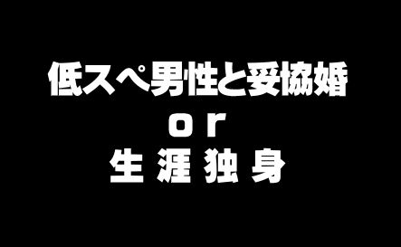 低スペ男性と結婚した方が貧乏生活になる気がするので、それだったら生涯独身の方がまだマシです。今の生活のレベルを落とす事は考えられません。