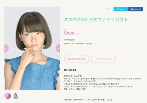 実在する女優、グラビアアイドルなどと並んで、ミスiDのセミファイナリスト132組(133人)の1人に選ばれている。